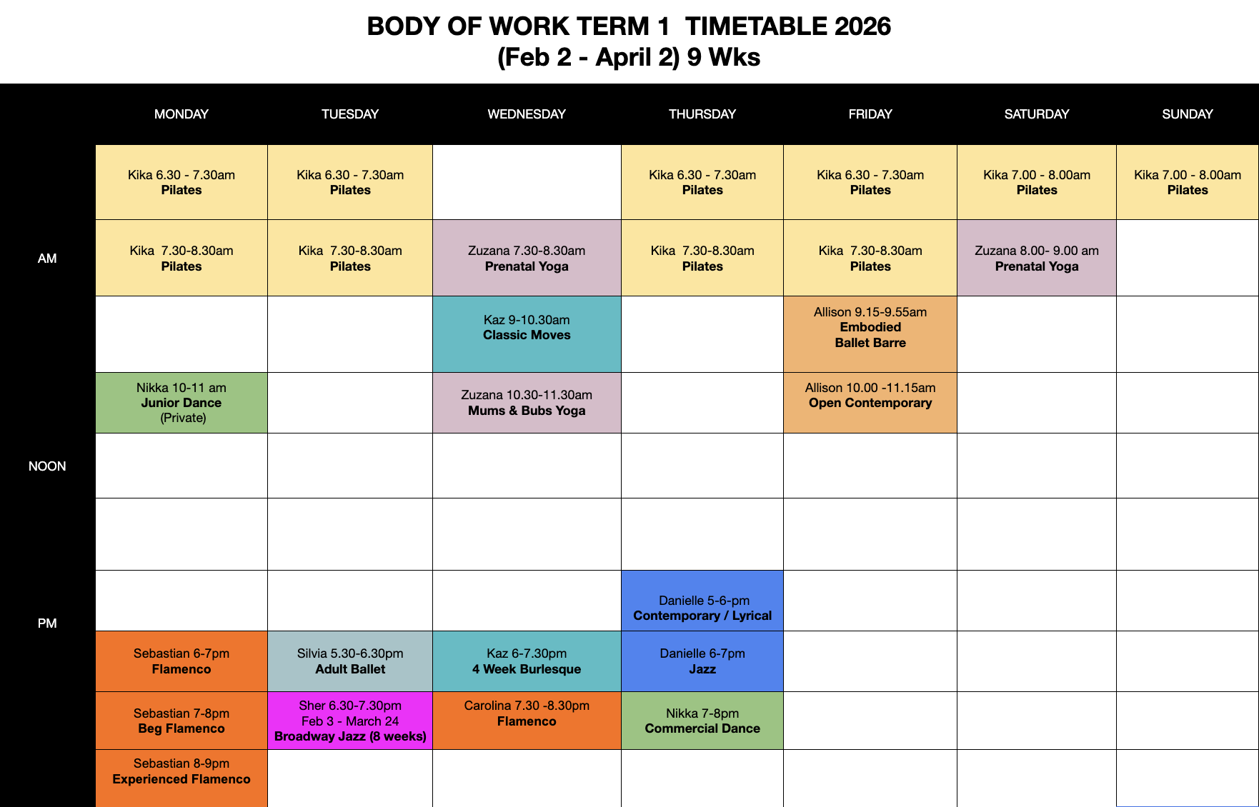 We run on school terms and our Term 1 timetable is out now. If you’d like to book the space for your own class next term, please get in touch. We do also offer the space for casual hire which you’ll find more information about below.
